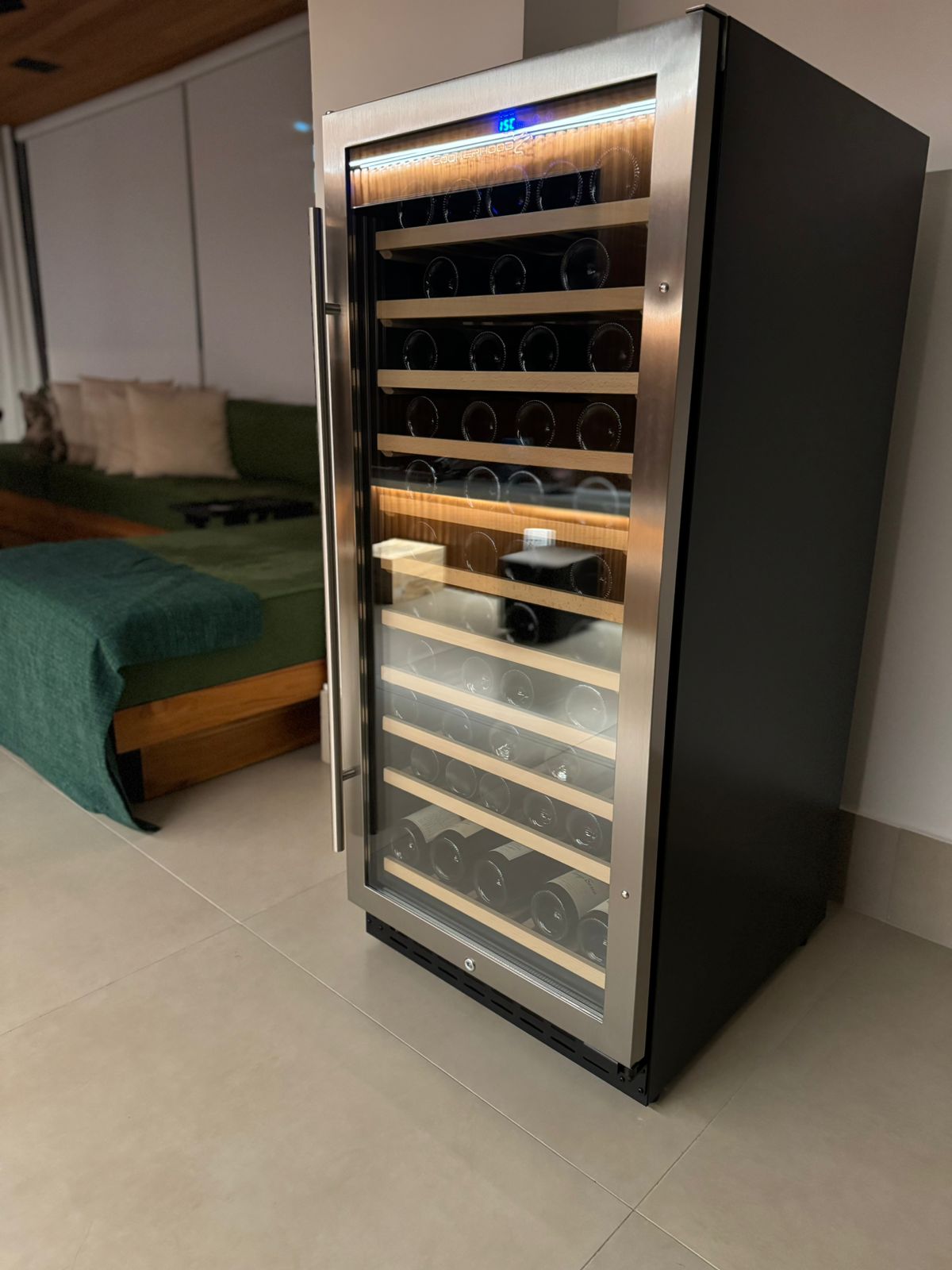 Para os apreciadores de vinhos que desejam unir elegância e funcionalidade, a Adega de 116 Garrafas da Cookerhood é a escolha ideal. Projetada para conservar suas garrafas nas condições ideais, esta adega destaca-se por sua capacidade generosa e recursos tecnológicos avançados.